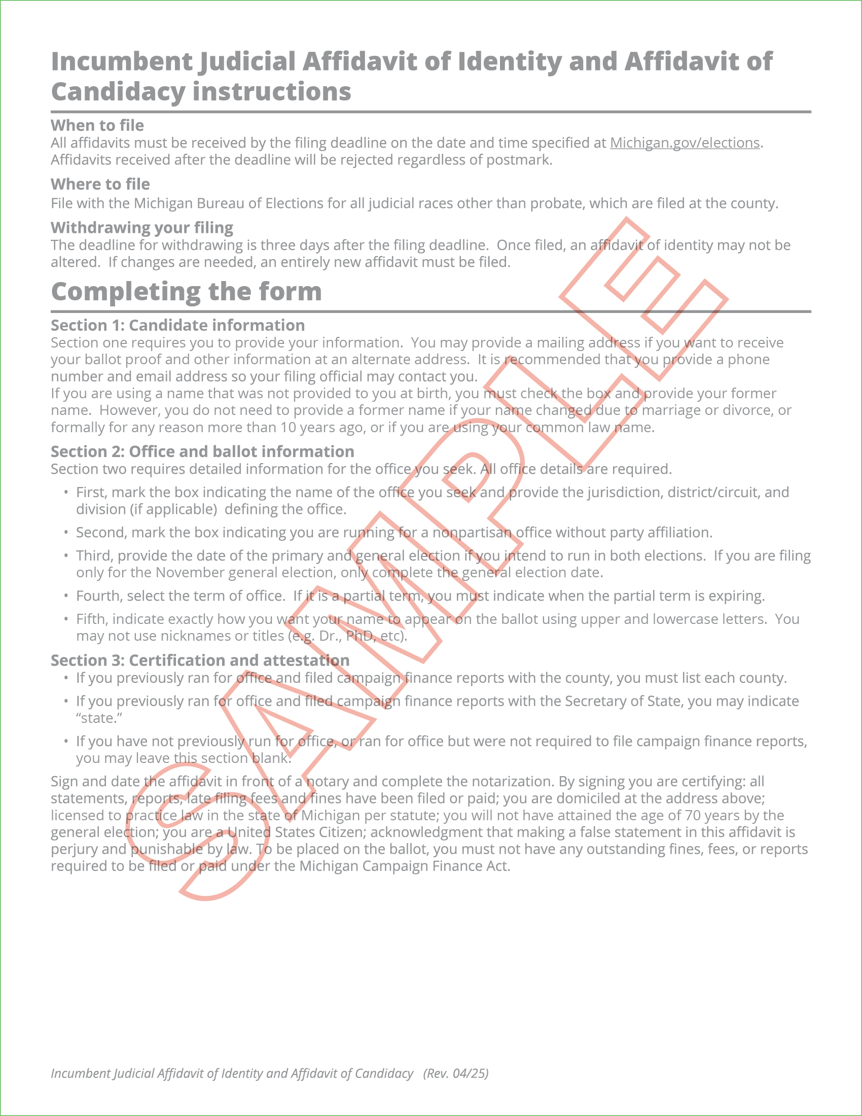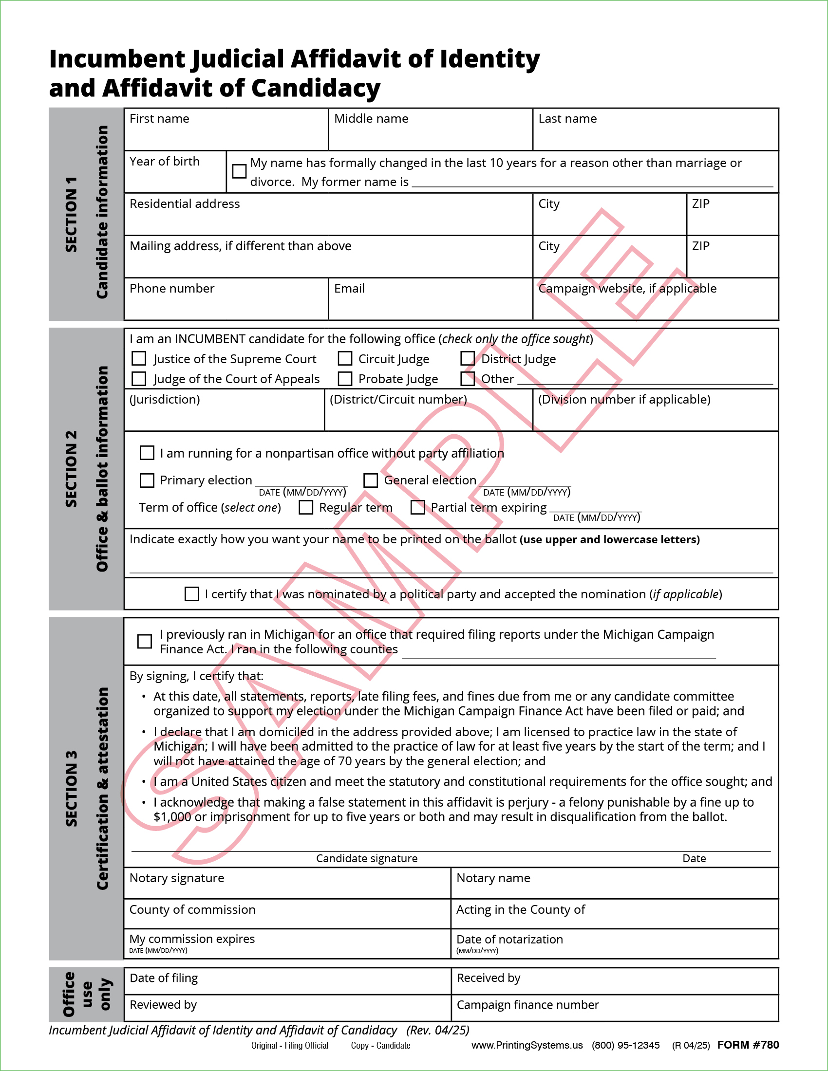 780 Incumbent Judicial Affidavit Identity (3-Ply) (25 per pkg) Rev. 04/2025