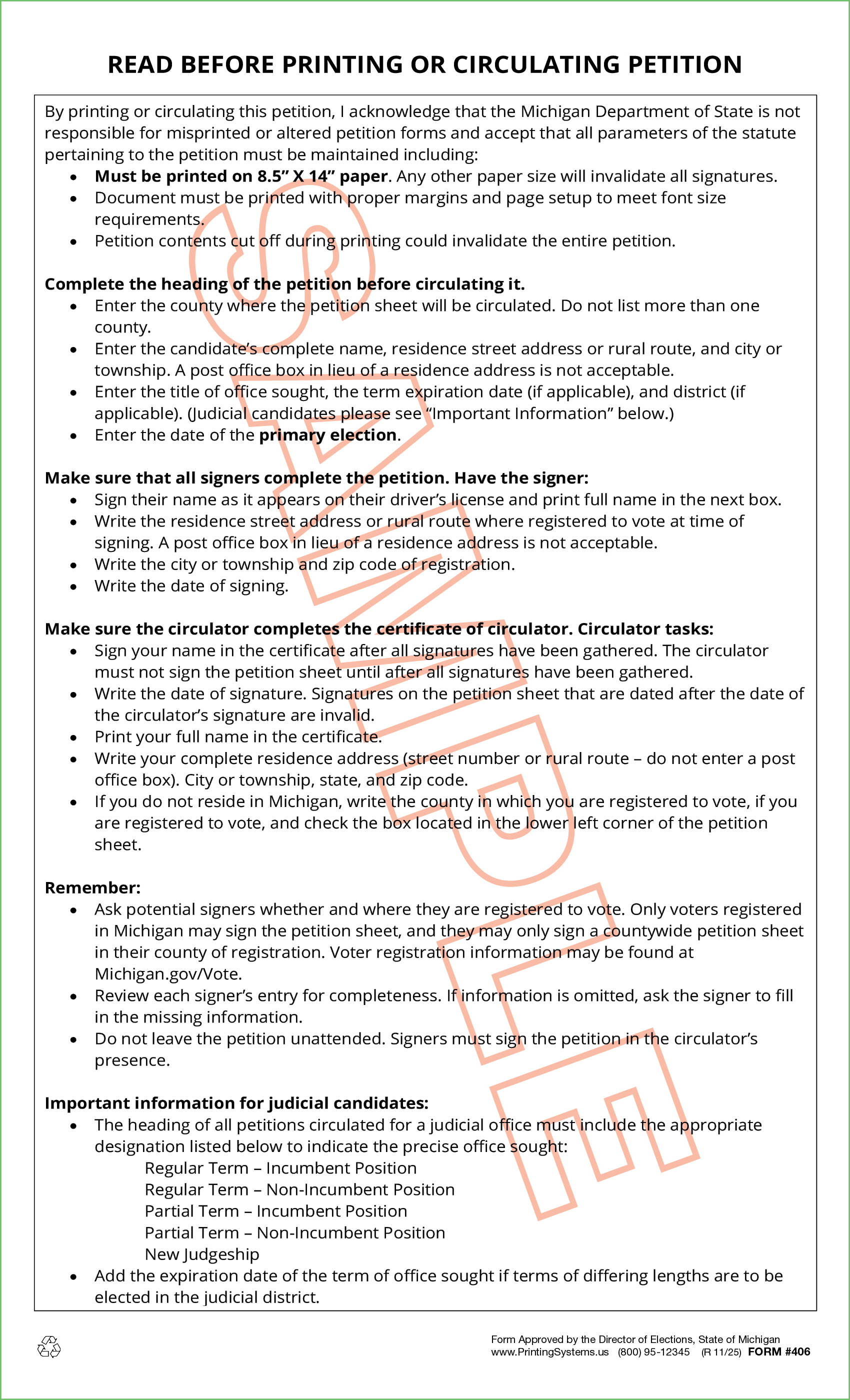 406 Nominating Petition (Countywide) Nonpartisan (50 per pad) Rev. 11/25