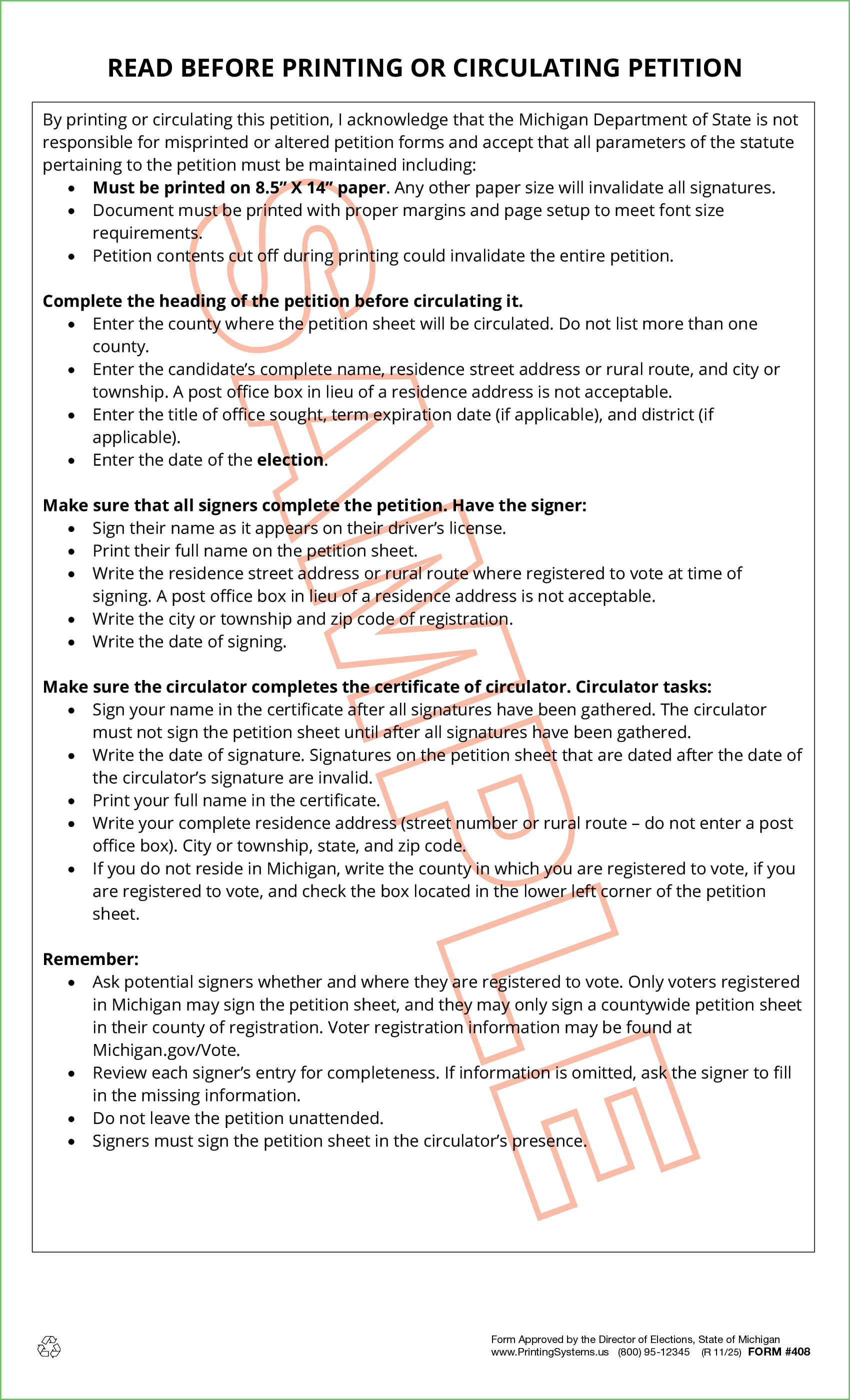 408 Qualifying Petition (Countywide) candidate w/o Party Affiliation (50 per pad) Rev. 11/25